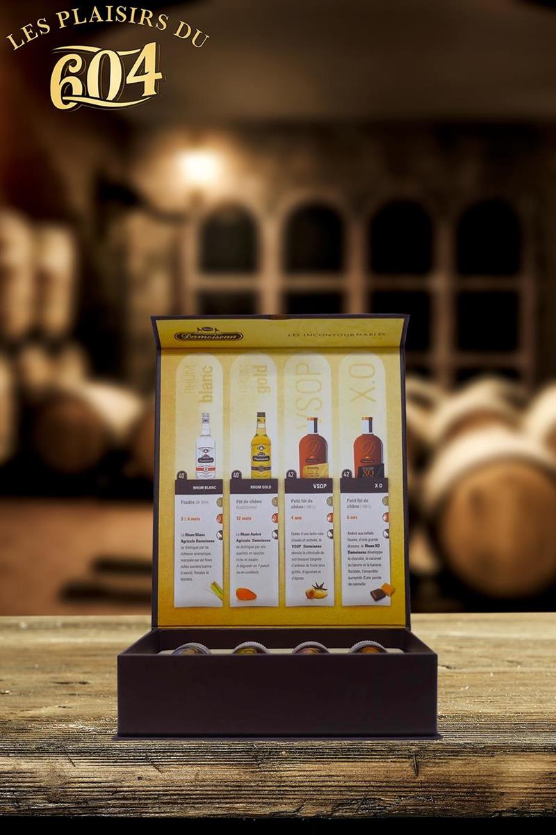 Box containing 4 Damoiseau mignonettes for a discovery of these essential rums.