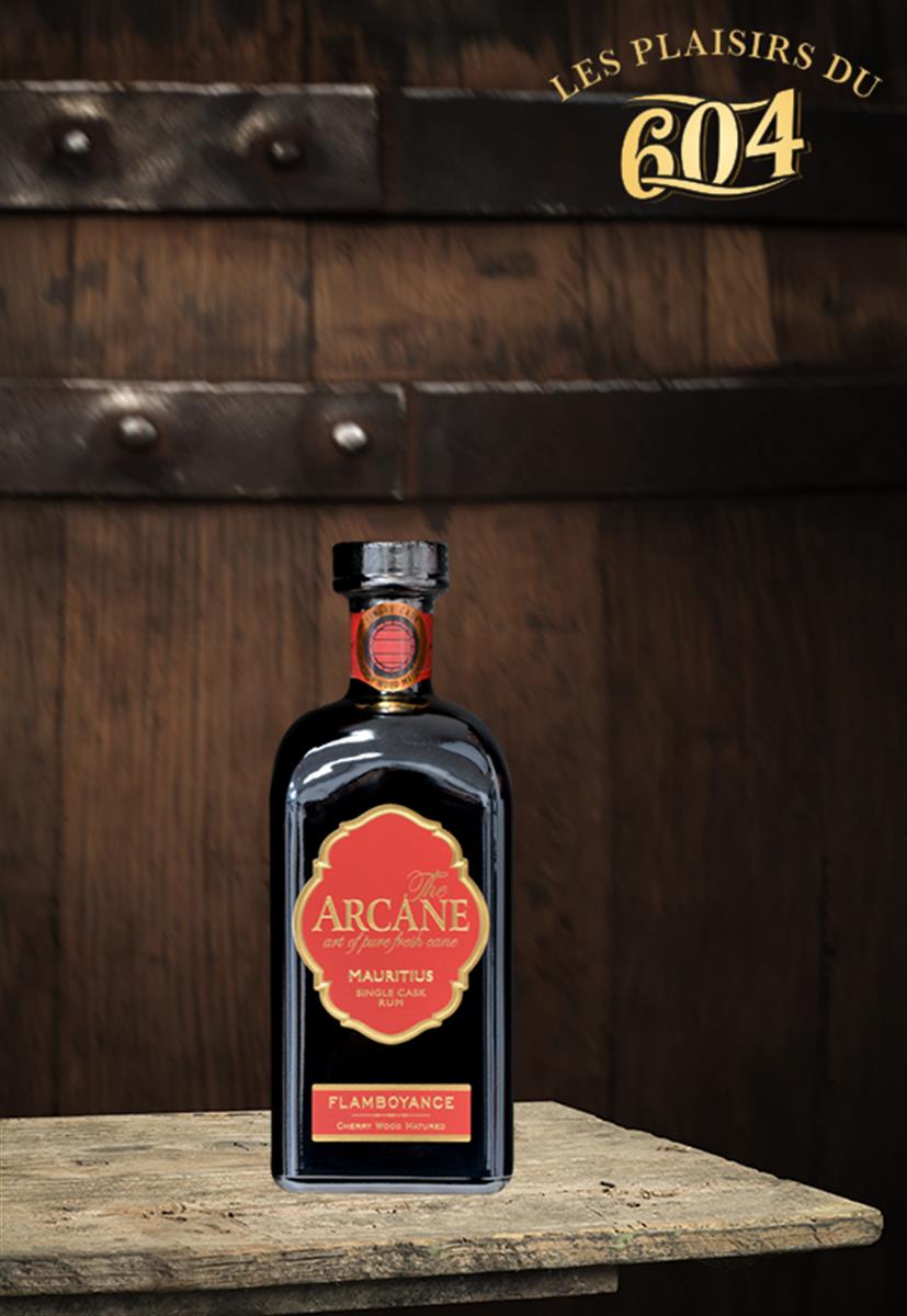 Arcane flamboyance est d’abord distillé à partir de canne fraîche. Sa particularité est son mode de vieillissement : dans un petit fût en bois de cerisier, sous le climat tropical de l’Île Maurice.