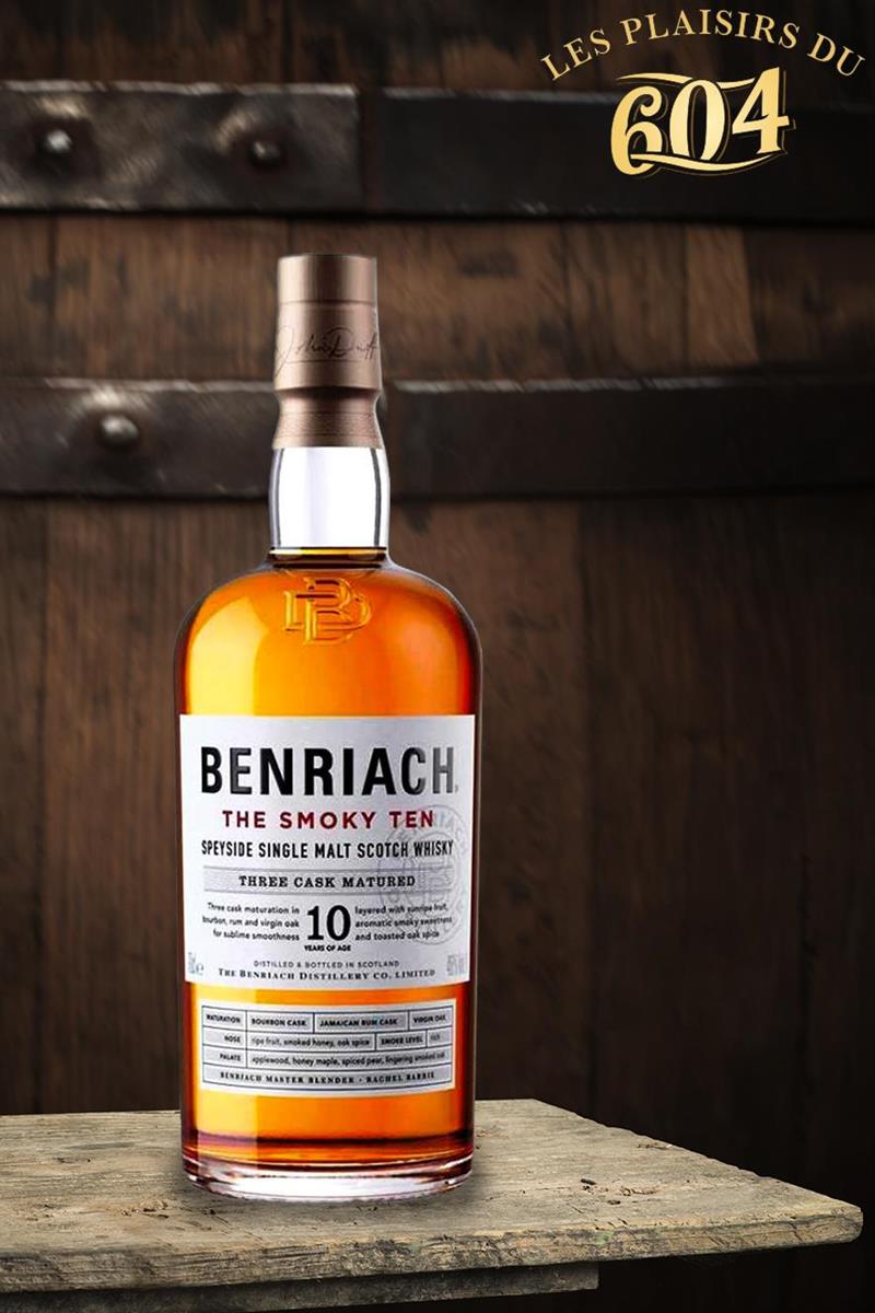 Whisky Speyside Single Malt vieillis au min 10 ans dans trois types de fûts différent, ex-fûts de bourbon,ex-fûts de Jamaican, ex-fûts virgin oak. Benriach The Smoky Ten est une combinaison entre un whisky tourbé et non tourbé savament marié ensemble pour créer des notes de fruit mûris au soleil,...