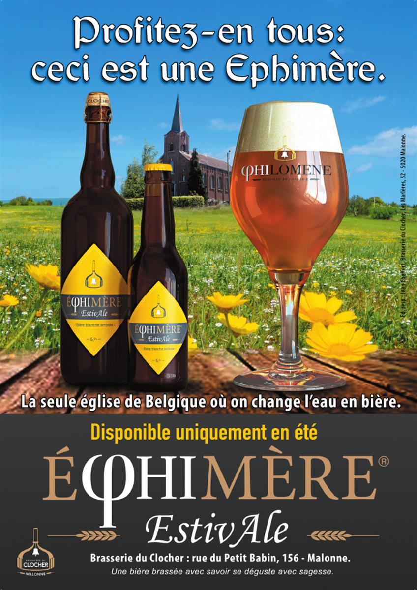 Première née de la nouvelle gamme de bières de saison de la Brasserie du Clocher, l’éPHImère estivAle est une blanche ambrée.