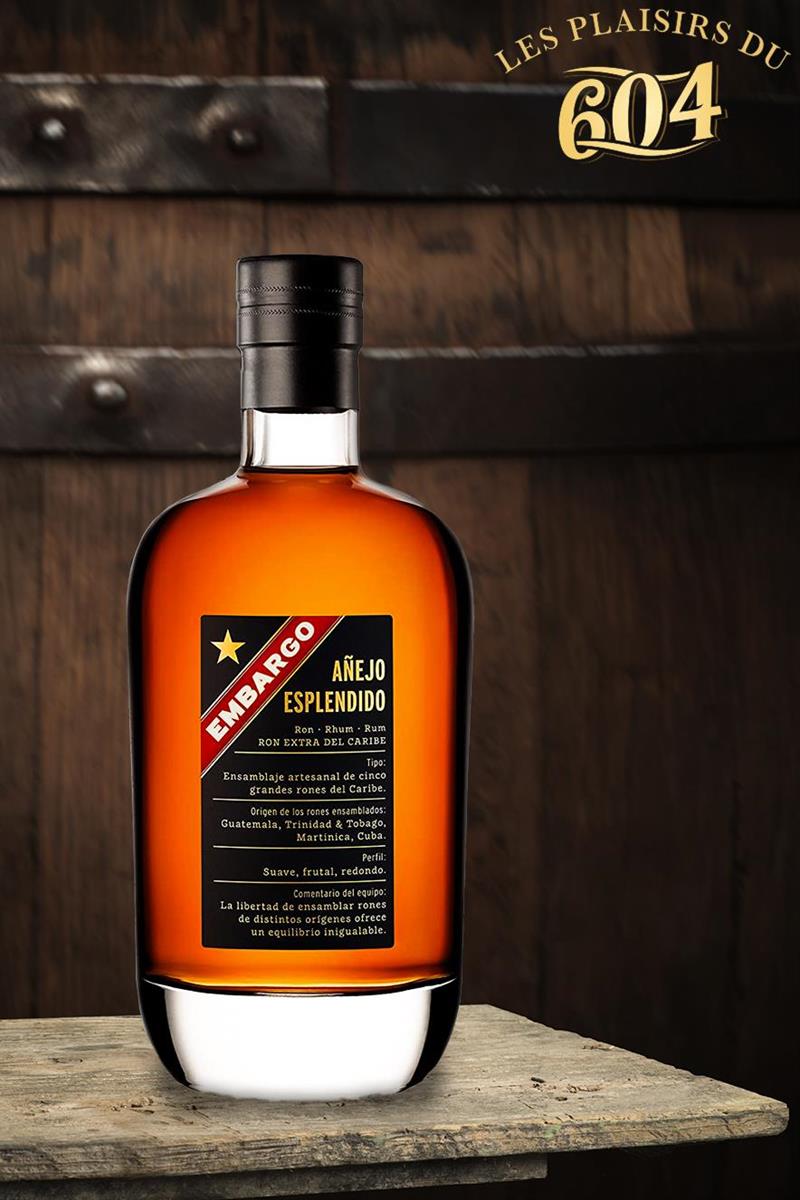 Embargo Añejo Esplendido est un assemblage de rhums de 4 provenances : Martinique (HSE), Guatemala, Cuba et Trinidad & Tobago, donc de l’agricole, du rhum traditionnel de 3 styles très différents.
