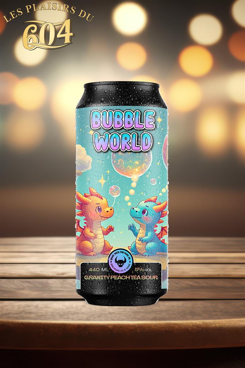 Inspirée par les pixels acidulés et les bulles colorées Bubble World est une sour légère, ludique et ultra rafraîchissante, brassée avec un sirop de granité goût thé pêche.
